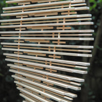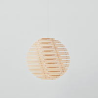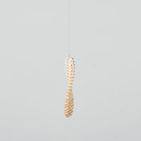 障子や襖などの日本独自の建具の要素を取り入れながら、水面に浮かぶ波紋や木洩れ陽を映し出した組子の木製モビール。丁寧に組まれた木の連なりの合間から光がこぼれ落ち、室内でも美しい自然の陰影を感じることができます。