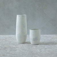 Kyoto ware carafe. Made from clay and decorated with white engobe in a unique brush pattern which is inspired by the delicate surface of water.
